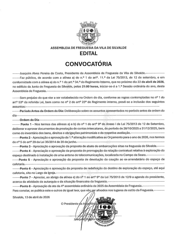 O Executivo da Junta de Freguesia da Vila de Silvalde tem a honra de convidar V. Ex.ª a pa…