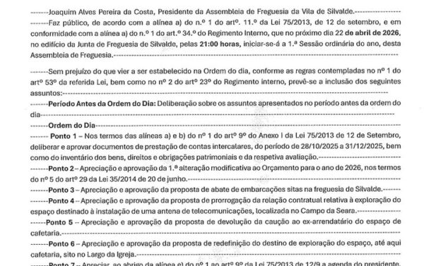 Junta de Freguesia de Silvalde > 2026 > Abril